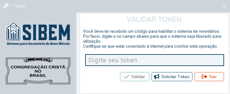 - Ao final da instalação será apresentado um formulário para inserir o token.